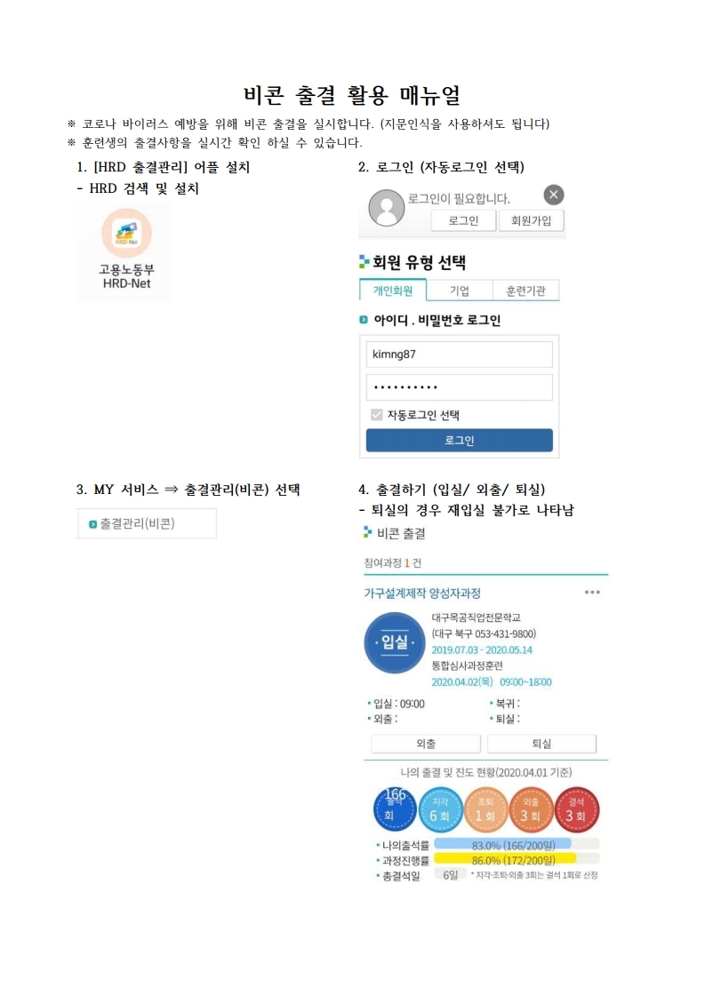 2020년 4월 부터 지문인식과 함께 비콘출결 실시