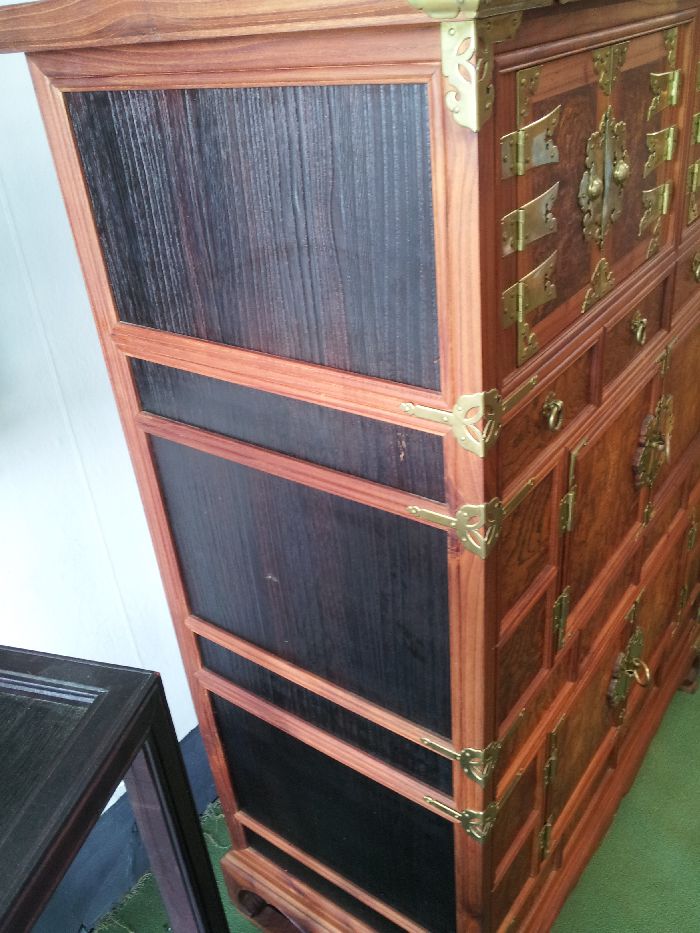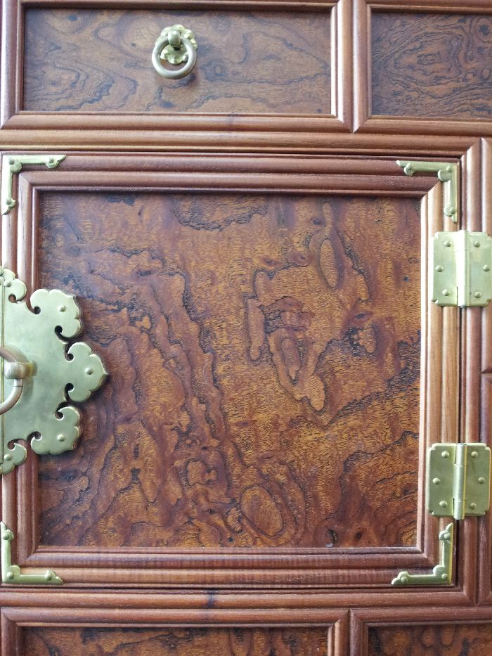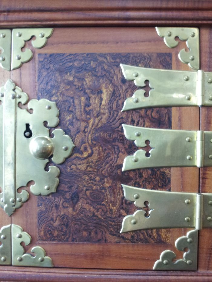 안시모 선생님의 원앙장 입니다. ^^크기 : 470 * 880 * 1250재료 : 느티나무 용목, 참죽, 오동, 신주장석 마감 : 비오파